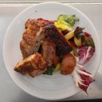 Costillas al horno con naranja y oloroso ensalada de verduras