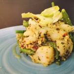 Ensalada de patatas Judías verdes huevo cocido y pesto