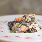Estofado de ternera a la cerveza con boniato y patatas en ajillo