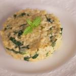 Risotto de espinacas alcachofas tomates cherry horneados y queso gorgonzola