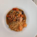 Tajine de pavo con limón aceitunas y nueces con Cous Cous integral y calabaza asada